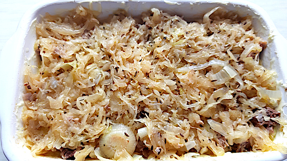 Der Sauerkraut-Kartoffelbrei-Auflauf.